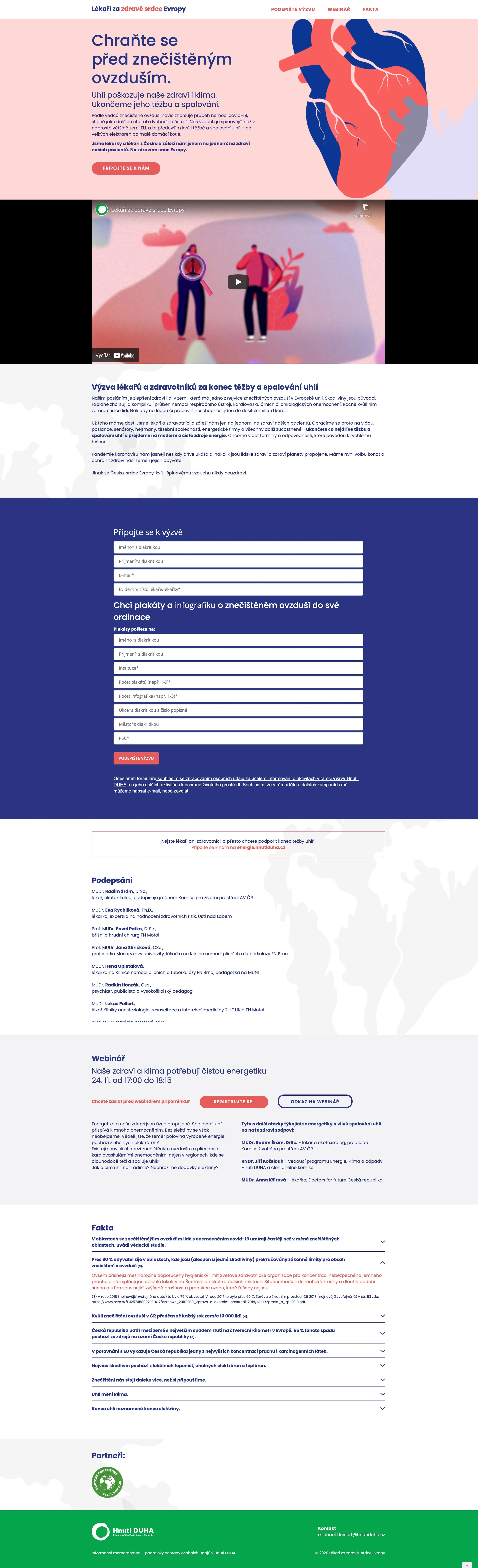 Poté jsme prozkoumali primární skupinu slavných lékařů, ukázali jim fakta a experti z Hnutí Duha vytvořili sérii webinářů. Tyto webináře vysvětlovaly nejen dopady spalování uhlí na kvalitu ovzduší a lidské zdraví, ale také to, jak může Česká republika transformovat svůj energetický systém, aby se do roku 2030 zbavila škodlivé těžby a spalování.